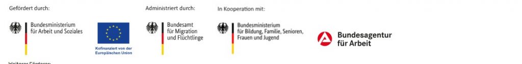 Das Projekt wird im Rahmen des Förderprogramms IQ – Integration durch Qualifizierung durch das Bundesministerium für Arbeit und Soziales und die Europäische Union über den Europäischen Sozialfonds Plus (ESF Plus) gefördert und vom Bundesamt für Migration und Flüchtlinge administriert. Partner in der Umsetzung sind das Bundesministerium für Familie, Senioren, Frauen und Jugend und die Bundesagentur für Arbeit.